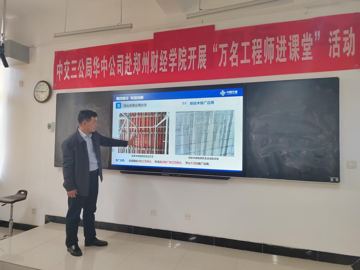为进一步构建企业专家参与的全员、全程、全方位的育人机制,强化校企合作及交流,引导土木学生明确学习目标、激发学习热情、洞察专业前景、启蒙职业发展方向,树立正确的就业观,11月25日下午,我院邀请中交三公局华中公司项目总工程师陶伊洛及中交三公局华中公司办公室主任兼人力资源部长陈宁莅临我院开展“名企高管进课堂”活动,讲座题目为:建筑工程施工精细化管理。